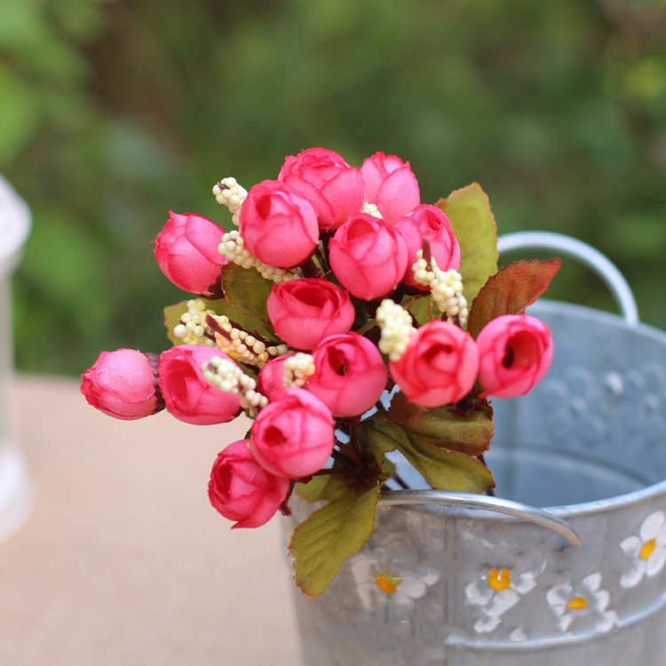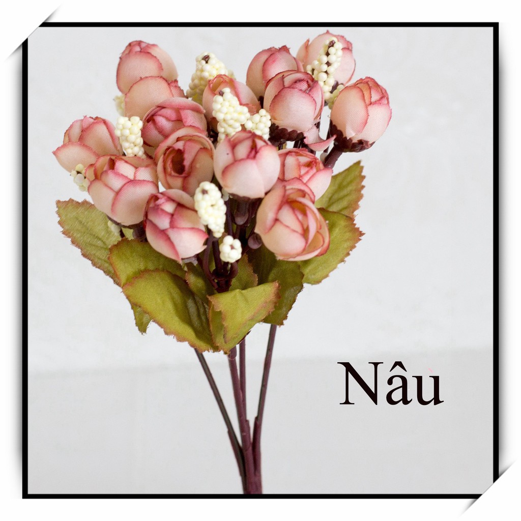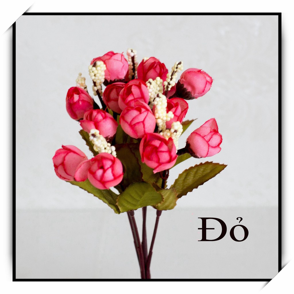 Giá trên là giá 1 chùm hoa hồng trà bi lụa:Hoa giả trang trí đẹp - Chùm hoa hồng trà bi lụa