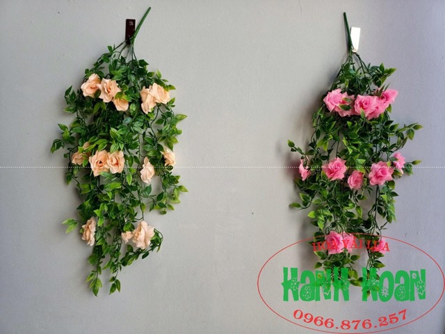 Chùm hoa hồng leo, hồng rủ. Khách lưu ý :+ Giá hoa hồng lá nhựa sẽ nhỉnh hơn lá vải vì sẽ bền hơn, sắc nét hơn