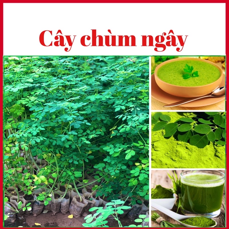 CÔNG DỤNG CÂY CHÙM NGÂY :Lá cây: có hương vị gần giống rau ngót nên có thể sử dụng như một loại rau trong bữa ăn thông thường. Lá chùm ngây cũng có thể ăn sống hoặc làm thành sinh tố rất dễ uống. Ngoài ra, bạn cũng có thể làm bột chùm ngây bằng cách phơi thật khô rồi nghiền nát, sau đó pha nước uống hoặc để nấu cháo, nấu bột.
