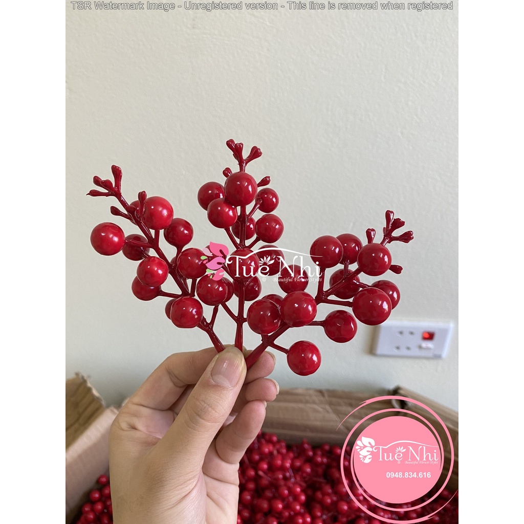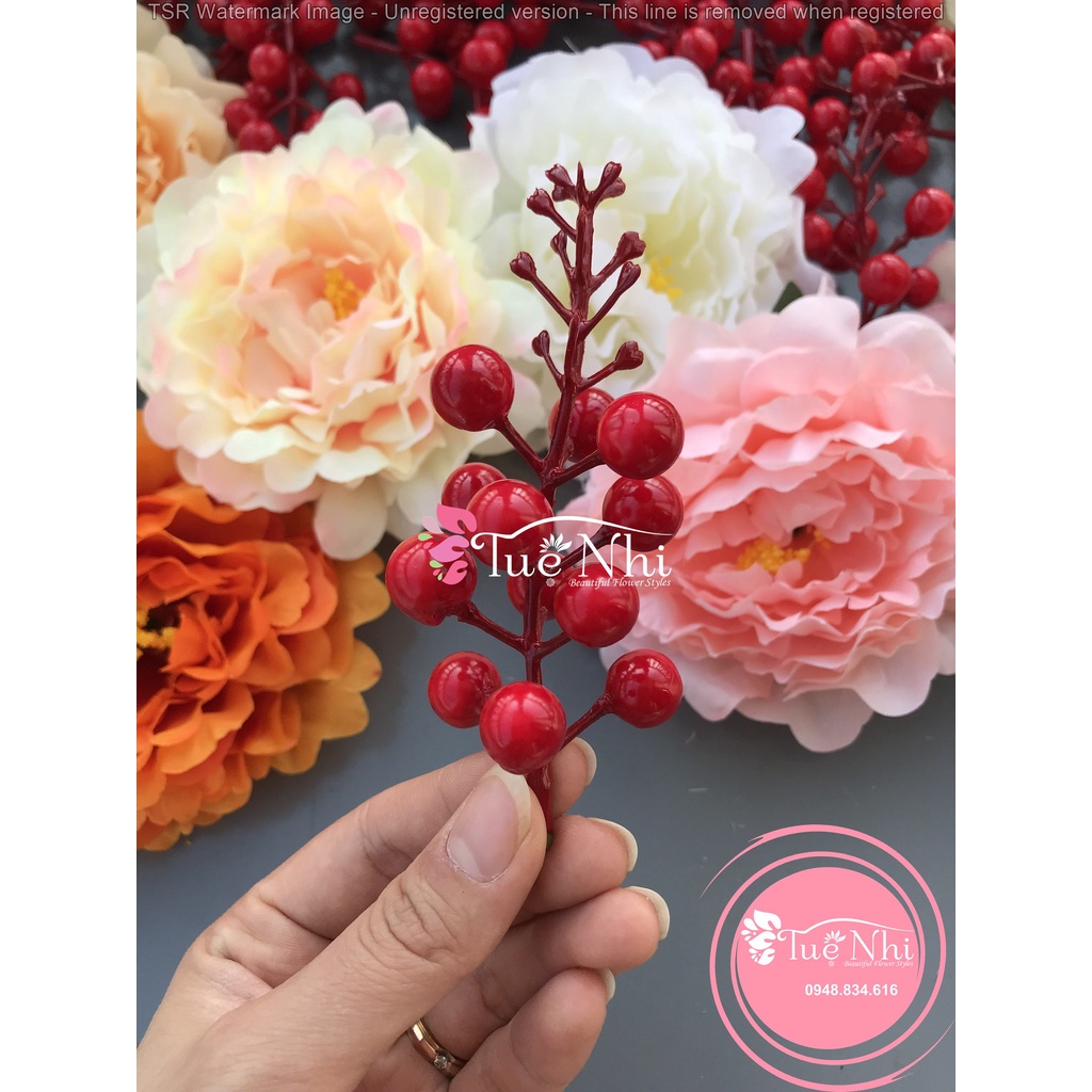 Giới thiệu Chùm Quả Cherry, Nhánh Đào Đông Trang Trí Giỏ Quà, Noel,Hoa Sáp Hoa Lụa, Làm Oản - Phụ Kiện Trang Trí.