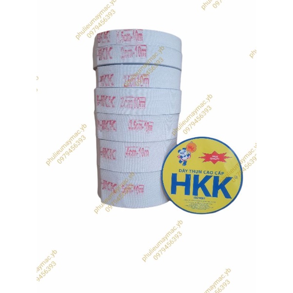 Chun HKK cao cấp 2.5cm. Sợi chun chắc chắn, khó bai dão, độ dãn vừa phải không làm người mặc khó chịu, phù hợp làm chun quần, chun váy...10m 1 cuộn