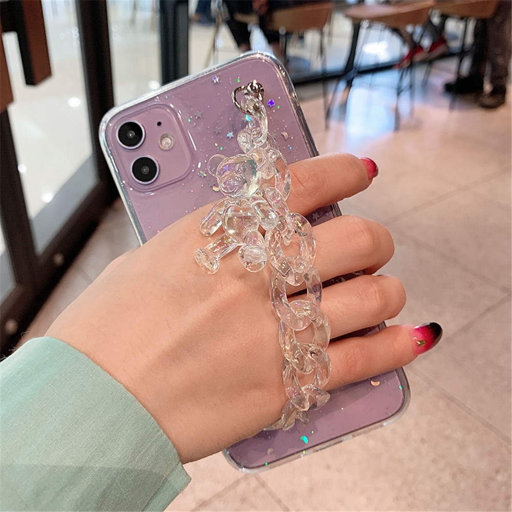 Chuỗi dây đeo tay giữ điện thoại gắn ốp điện thoại DIY acrylic màu sắc phiên bản mới trang trí gấu có khóa cài nhỏ gọn