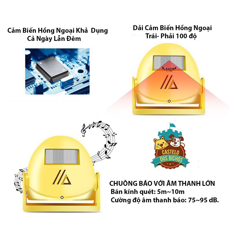 -Chuông báo khách thông minh ứng dụng công nghệ cảm biến chuyển động hồng ngoại thân nhiệt PIR, khi có người chuyển động trong vùng quét sẽ tự đổ chuông tự động và bạn không cần phải tác động gì vào thiết bị. Âm thanh phát ra là : " Ding Dong, Mời Bạn Rửa Tay, Sát Khuẩn, Và Đeo Khẩu Trang. Xin Cảm Ơn!”