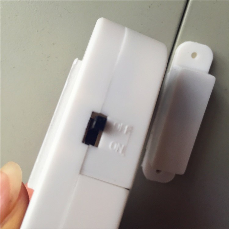 - Bật công tấc bên hông bộ phận chính sau khi đóng cửa. Khi có người mở cửa từ bên ngoài, máy sẽ phát ra tiếng động báo hiệu > 90dB khi bộ phận chính và bộ phận phụ cách xa nhau từ 10mm trở lên.