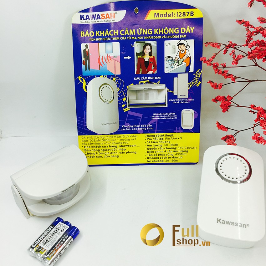Mô tả báo khách, báo động chống trộm cảm ứng không dây 2 mắt cảm ứng 2 chuông báo kawasan 02- i287BGiới thiệu