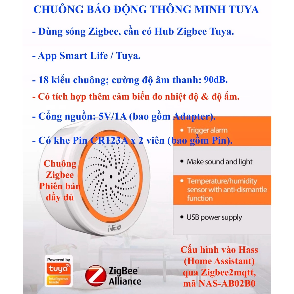 Chuông báo động , báo khách thông minh , sóng Zigbee / Wifi , hệ Tuya / Smart Life / Home Assistant -