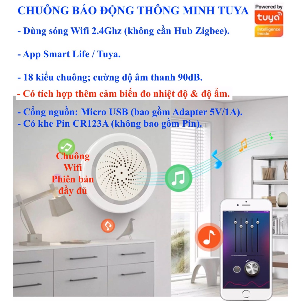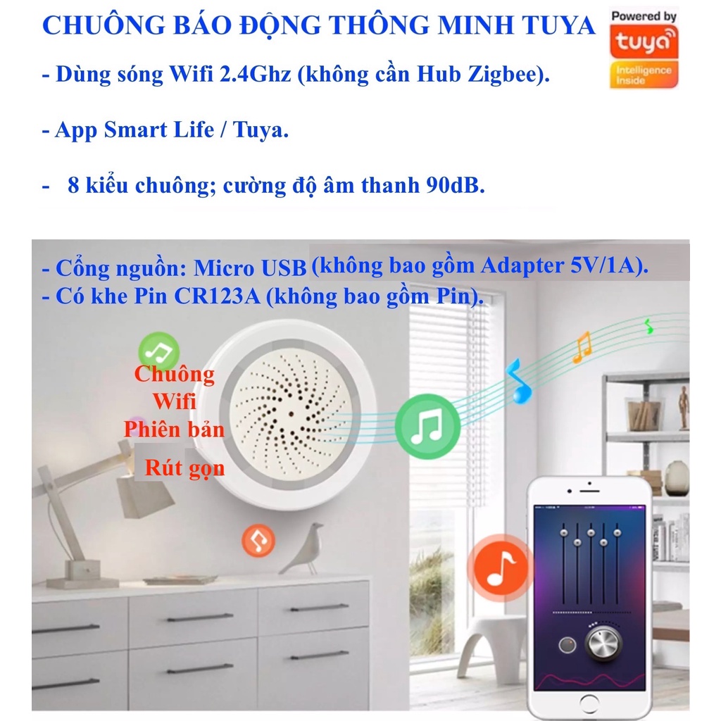 Chuông báo động hoặc chuông báo khách thông minh.Dùng App Smart Life hoặc Tuya.