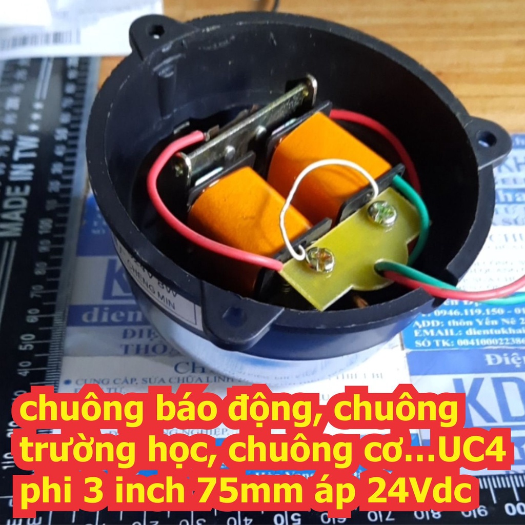 chuông báo động, chuông trường học, chuông cơ….phi 3 inch, 75mm, áp 220Vac kde5404chuông báo động, chuông trường học, chuông cơ… UC4 phi 3 inch 75mm áp 24Vdc 8W