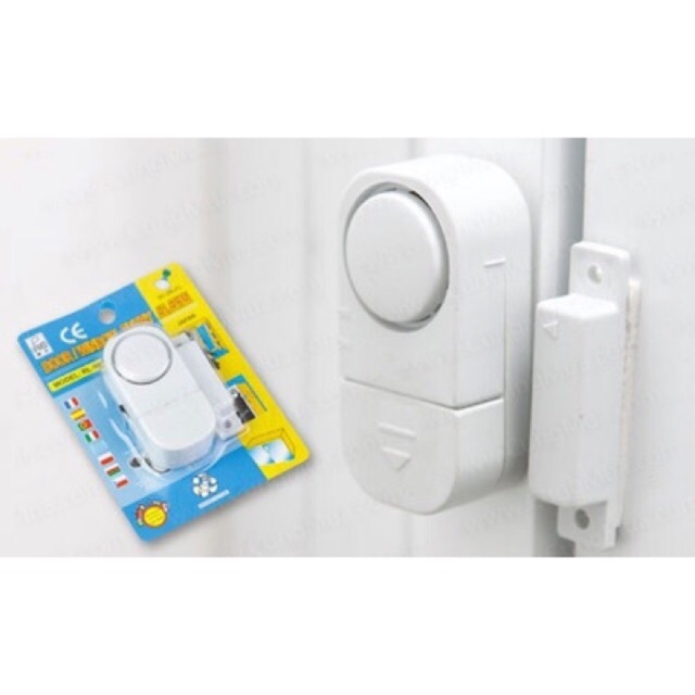 Đặc điểm nổi bật- Chuông báo chống trộm gồm 2 phần: 1 bộ phận chính gắn vào cửa, một bộ phận phụ gắn vào mép tường bên cạnh. 2 bộ phận đặt cùng nhau, khi cách xa vài cm, chuông sẽ kêu lớn báo động cho bạn lúc cửa bị mở.