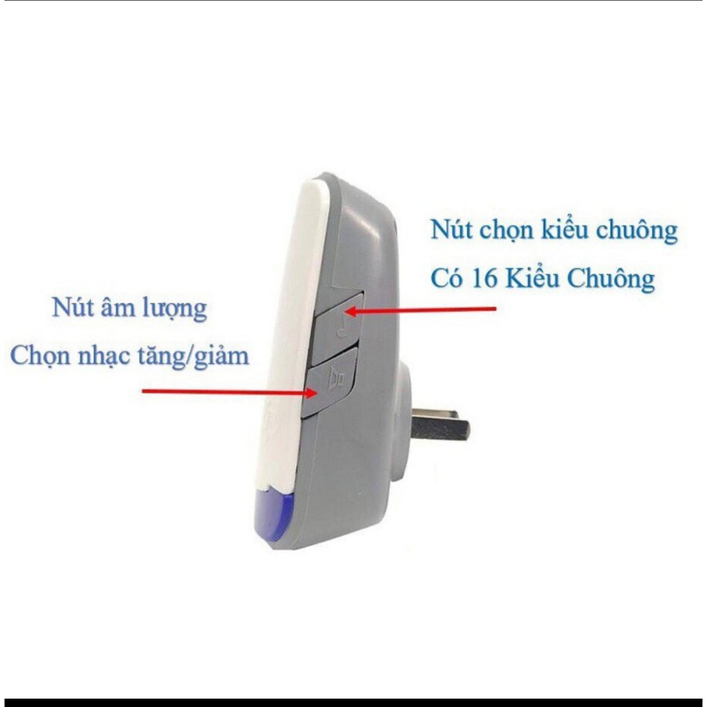 - Gắn chuông vào ổ cắm điện 220V và nhấn nút ở phía trên lưng chuông chọn kiểu chuông cần báo.