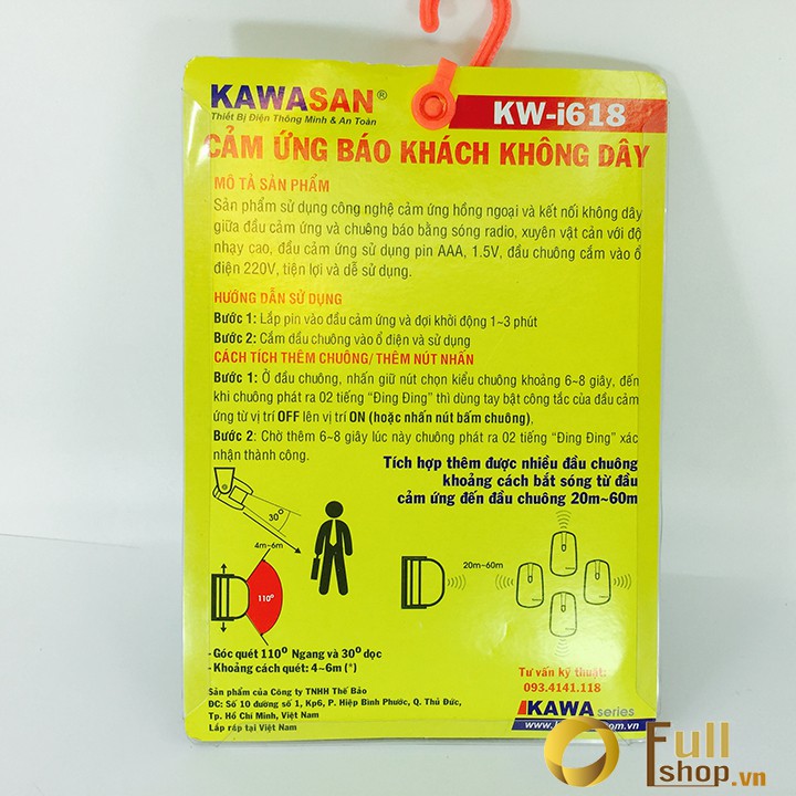 Chuông báo khách, báo động cảm ứng hồng ngoại không dây 2 mắt cảm ứng 1 chuông báo Kawasan I618A-D28BSản phẩm bao gồm 2 mắt cảm ứng 1 chuông báo khách