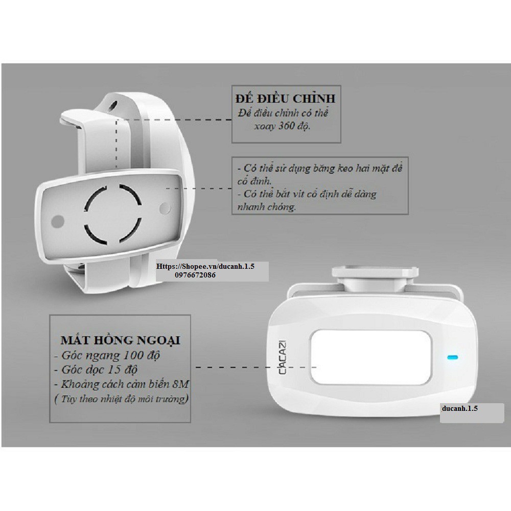 - Loại sản phẩm: báo khách/báo động hồng ngoại không dây cao cấp Cacazi