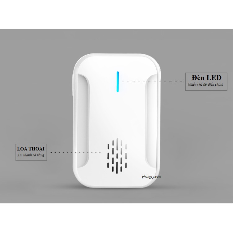 - Chuông hỗ trợ 36 kiểu âm thanh, 5 giọng chào hoặc chế độ báo động ở tần số 113dB