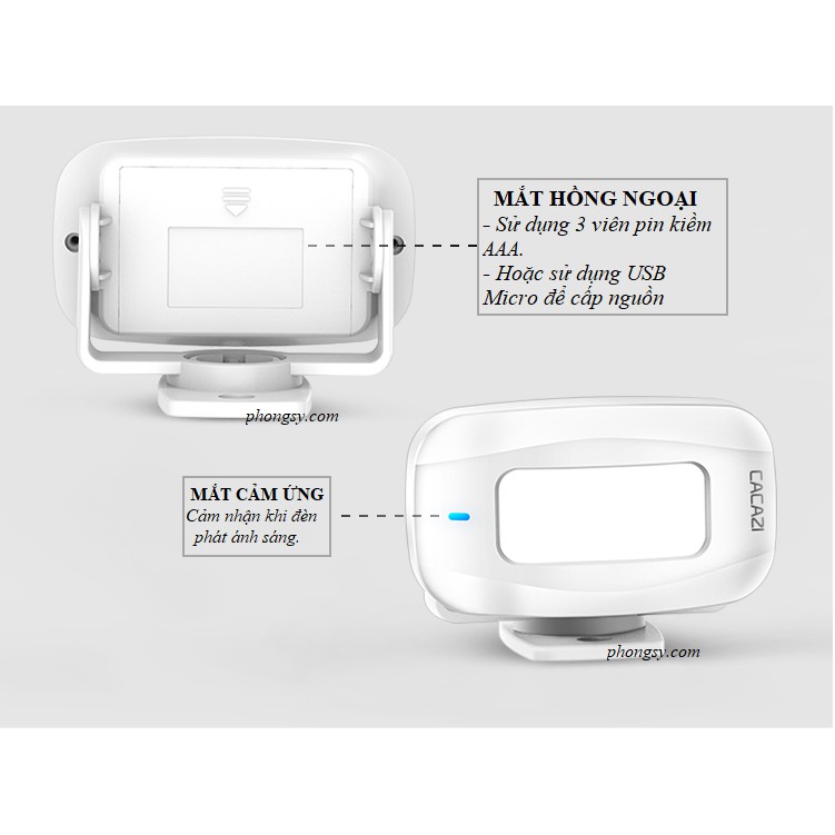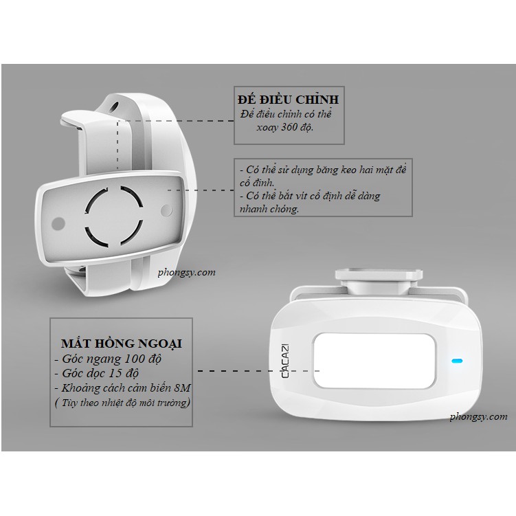 Giới thiệu Chuông báo khách, báo động hồng ngoại không dây Cacazi-C12