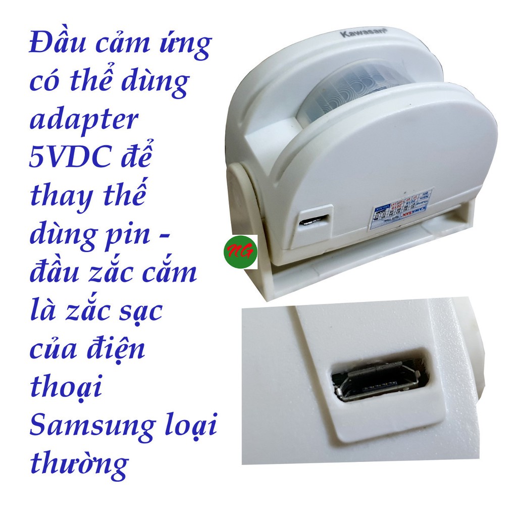 * Cảm biến hồng ngoại dùng 3 pin AAA 1.5 volt hoặc dùng adapter 5VDC có zắc cắm phù hợp như hình ( lưu ý bộ sản phẩm không có kèm adapter ) . Góc quét của cảm biến là 110 độ ngang - 30 độ dọc - khoảng cách quét là từ 4 - 6 mét