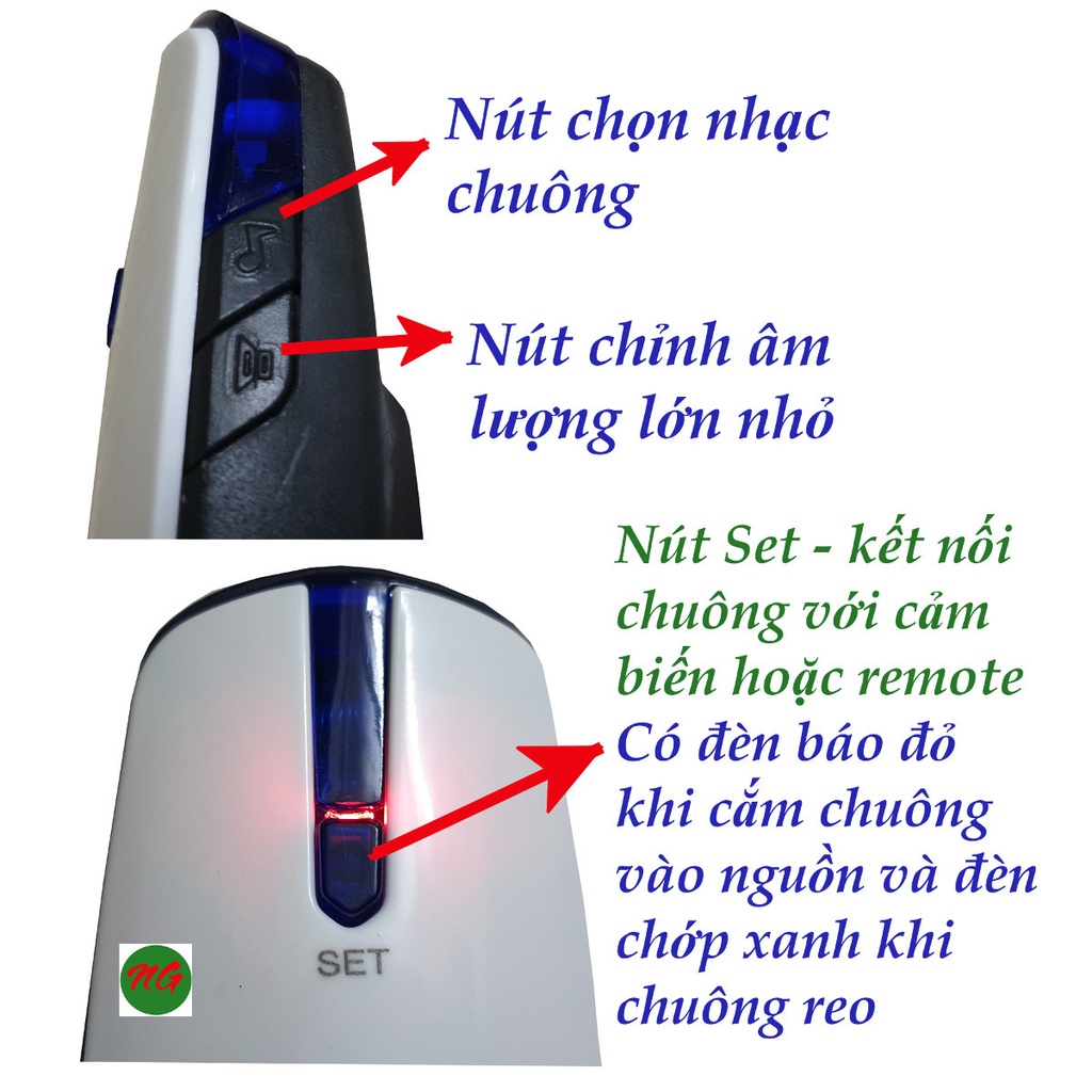 Nếu cần có thể mua thêm REMOTE để điều khiển tắt mở hoặc chỉnh âm lượng hoặc chọn kiểu nhạc cho ĐẦU CHUÔNG từ xa