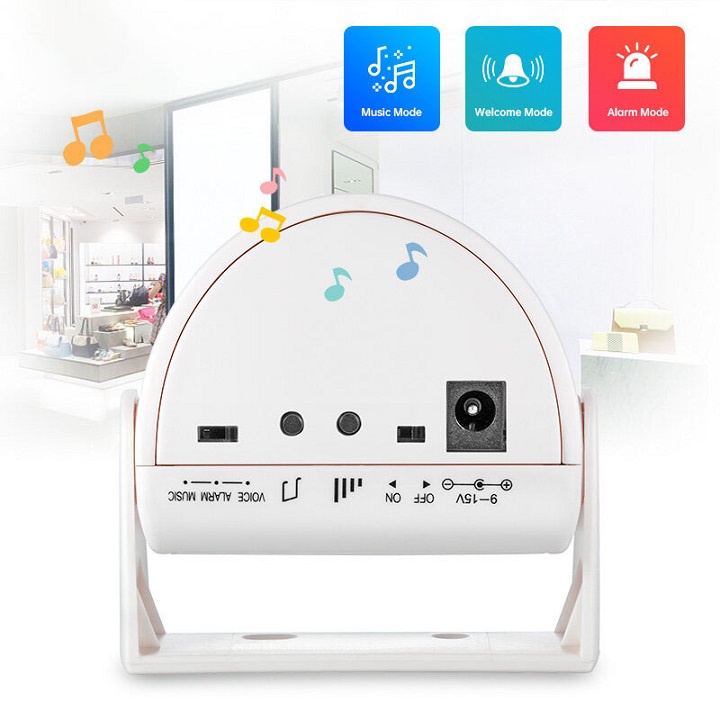 -Với chế độ báo khách: khi có người đi vào khu vực ngang qua mắt cảm ứng thì sẽ kêu theo điệu nhạc. Có 1 kiểu nhạc để chọn như ding doong ding doong. Chuông sẽ ngừng báo khi hết điệu nhạc