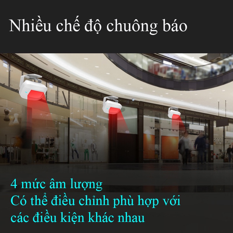 - Báo động chống trộm: Phát ra âm thanh báo động có mức cường độ âm khoảng 110 dB khi có trộm bước vào nhà/cửa hàng