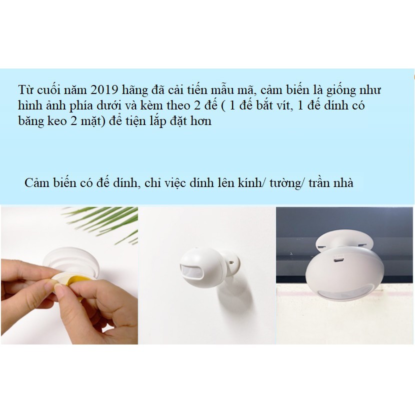* lưu ý : từ cuối năm 2019, hãng Kerui đã cải tiến mẫu mã của cảm biến. cảm biến của mẫu báo khách hiện tại là của bản nâng cấp ( kèm theo 2 đế: 1 đế bắt vít và 1 đế dính tường thay vì chỉ có 1 đế bắt vít như mẫu cũ).