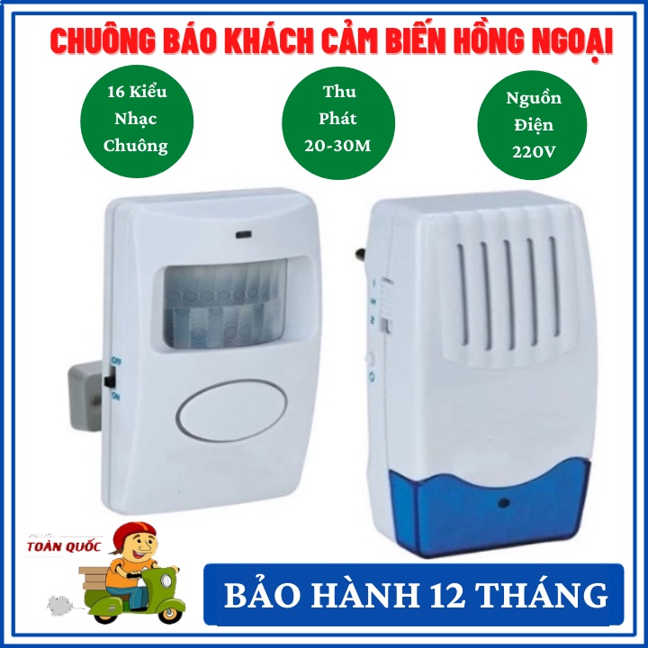 - Chuông báo khách không dây cảm biến hồng ngoại được cải tiến không dây, giúp việc thi công lắp đặt trở nên đơn giản, với nhiều kiểu âm thanh, chế độ báo động tự chọn khác nhau.
