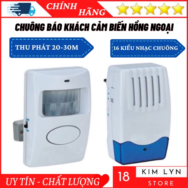 - Chuông báo khách không dây cảm biến hồng ngoại được cải tiến không dây, giúp việc thi công lắp đặt trở nên đơn giản, với nhiều kiểu âm thanh, chế độ báo động tự chọn khác nhau.