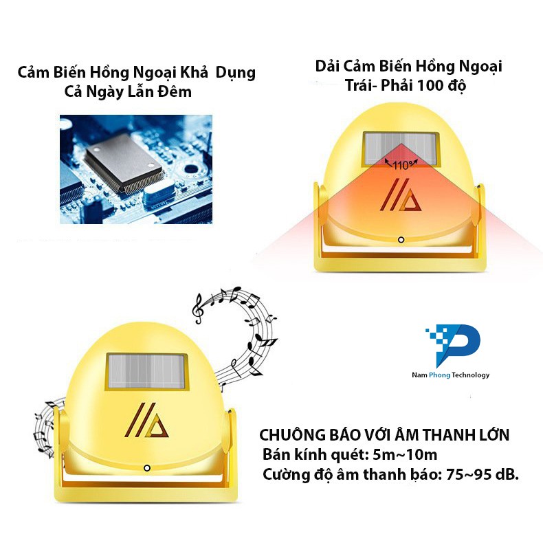 Chuông báo khách thông minh ứng dụng công nghệ cảm biến chuyển động hồng ngoại thân nhiệt PIR, khi có người chuyển động trong vùng quét sẽ tự đổ chuông tự động và bạn không cần phải tác động gì vào thiết bị. Âm thanh phát ra là : " Ding Dong, Mời Bạn Rửa Tay, Sát Khuẩn, Và Đeo Khẩu Trang. Xin Cảm Ơn!”