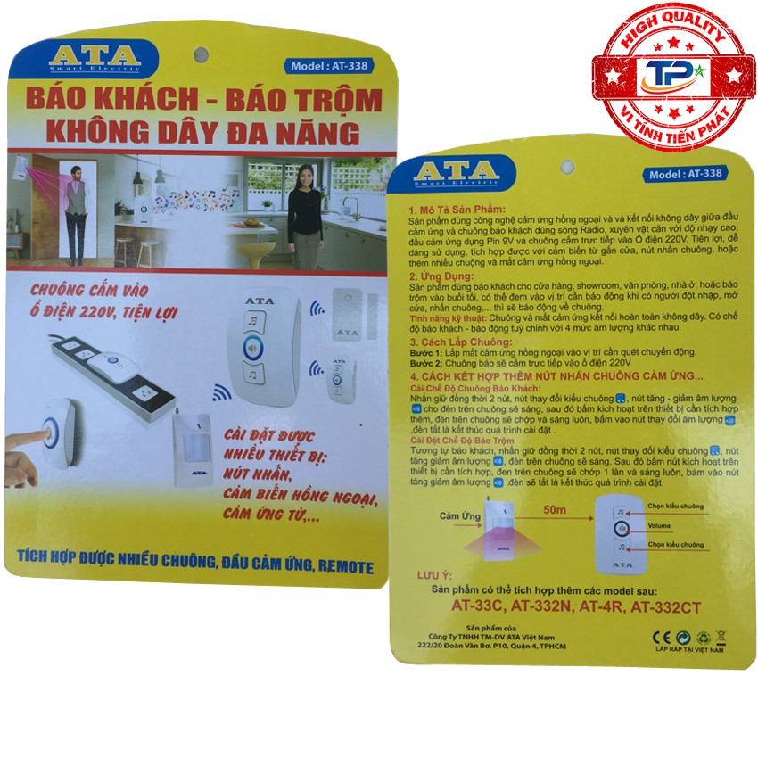 Giới thiệu Chuông cảm biến hồng ngoại báo khách báo trộm không dây tự động thông minh ATA AT-338 cao cấp và đa năng