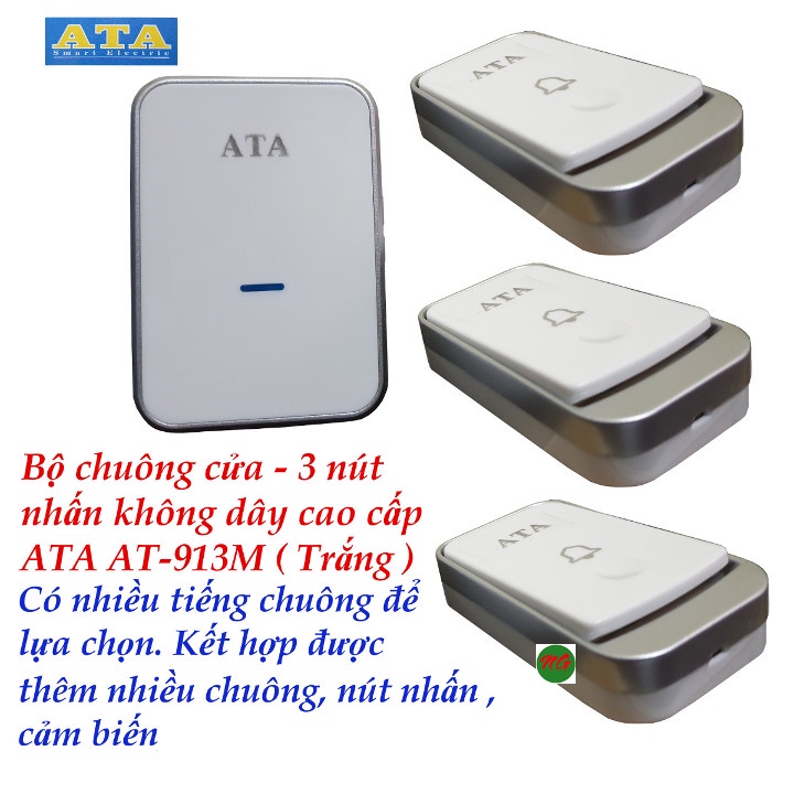 Bộ chuông cửa - 3 nút nhấn không dây loại tốt ATA AT-913M - Tiếng chuông lớn