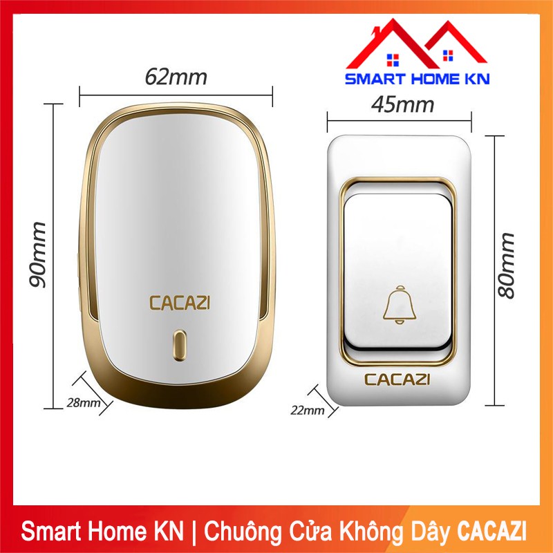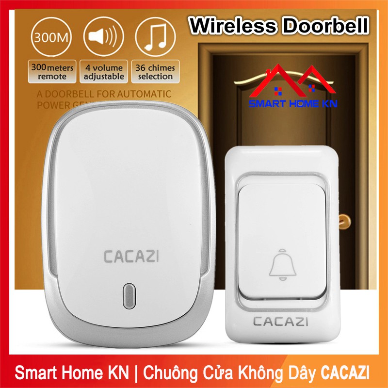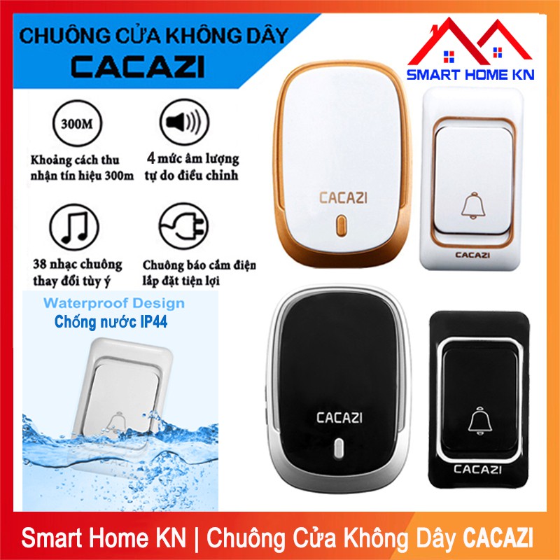 Chuông cửa thông minh không dây Cacazi là phiên bản nâng cấp mới nhất của thương hiệu Cacazi có khoảng cách nhận tín hiệu cực rộng bán kính 300 mét trong điều kiện lý tưởng, có tường chắn thì khoảng cách nhận tín hiệu 25-30m. Có 38 kiểu chuông thay đổi tuỳ ý, 4 mức âm lượng.
