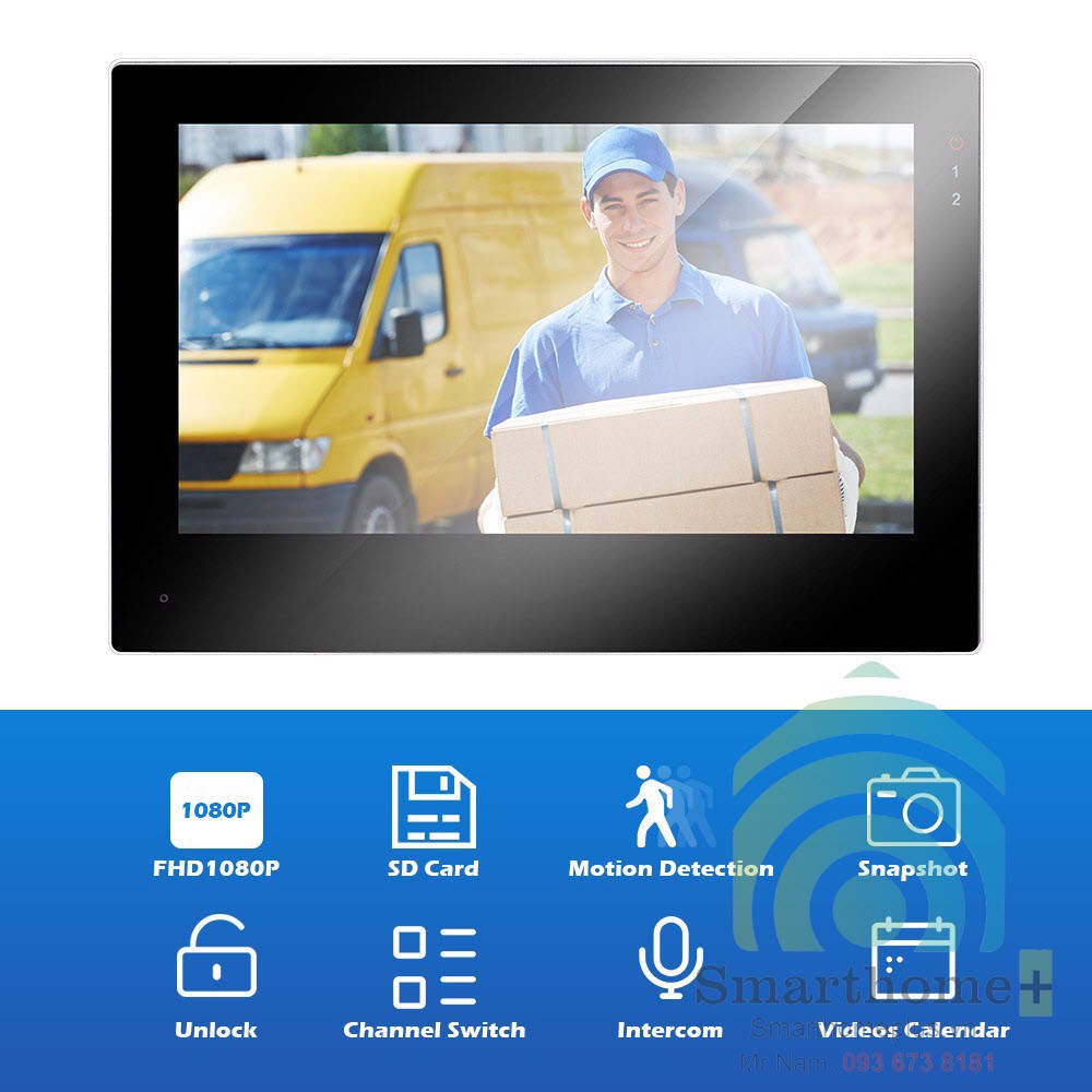 - Màn hình hiển thị kích thước 7'' LCD to đẹp cảm ứng điện dung tích hợp nhiều chức năng, kết nối mạng wifi trong nhà, nhiều loại nhạc chuông tích hợp sẵn, giao tiếp intercom liên lạc nội bộ với các màn hình phụ khác.