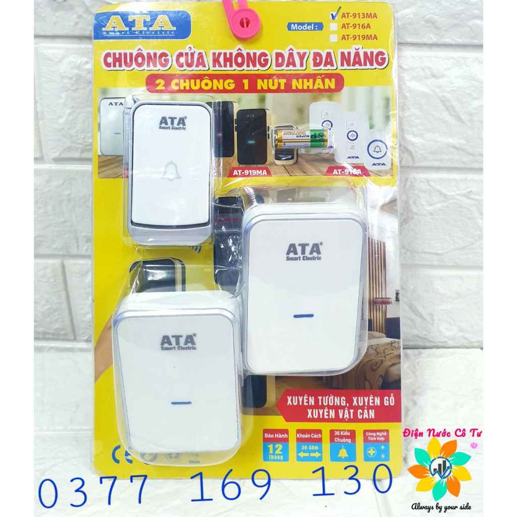 Thiết Bị Điện Gia Dụng > Mạch điện & Phụ tùng > Chuông cửa || CHUÔNG CỬA ĐÔI KHÔNG DÂY CAO CẤP ATA AT913ACòn hàng