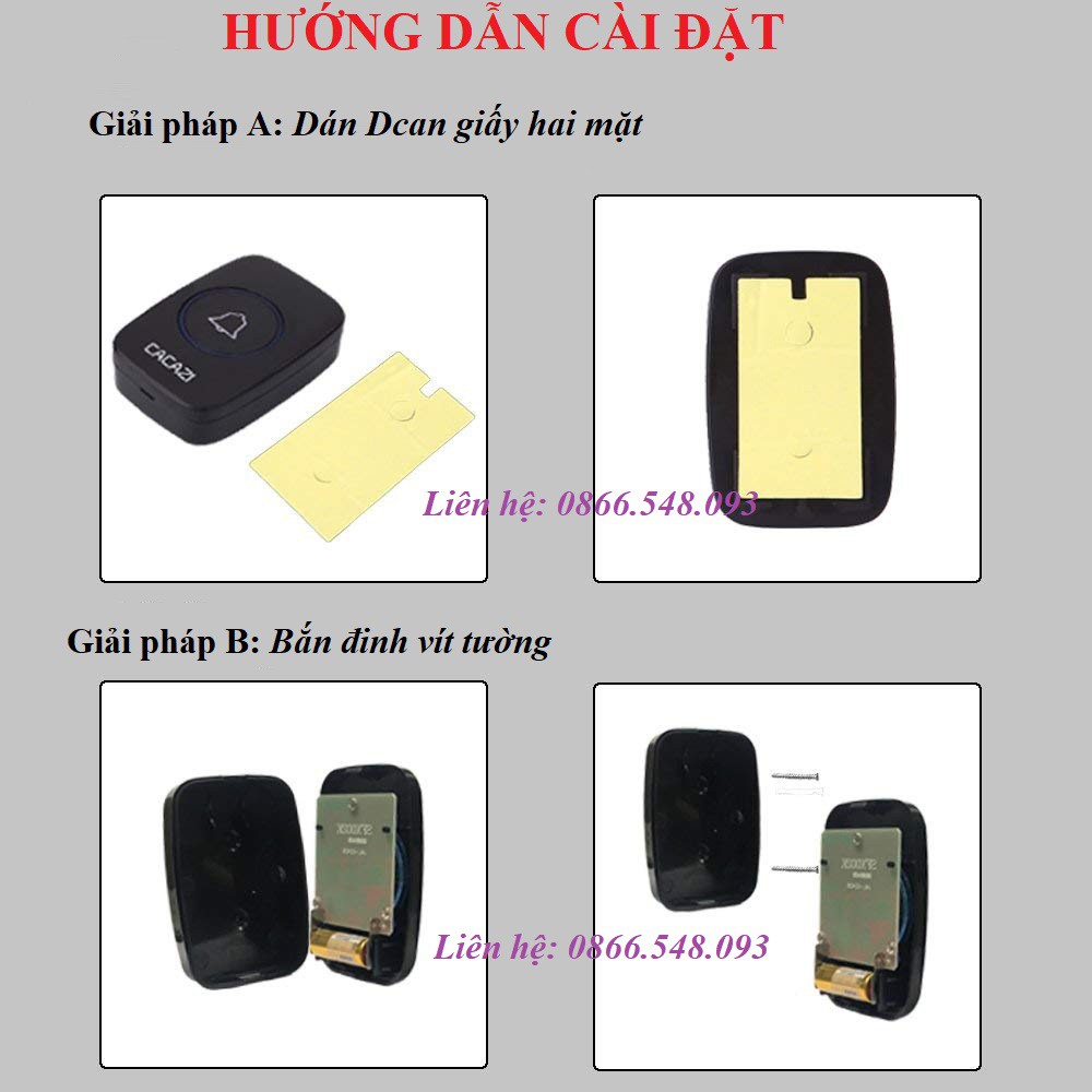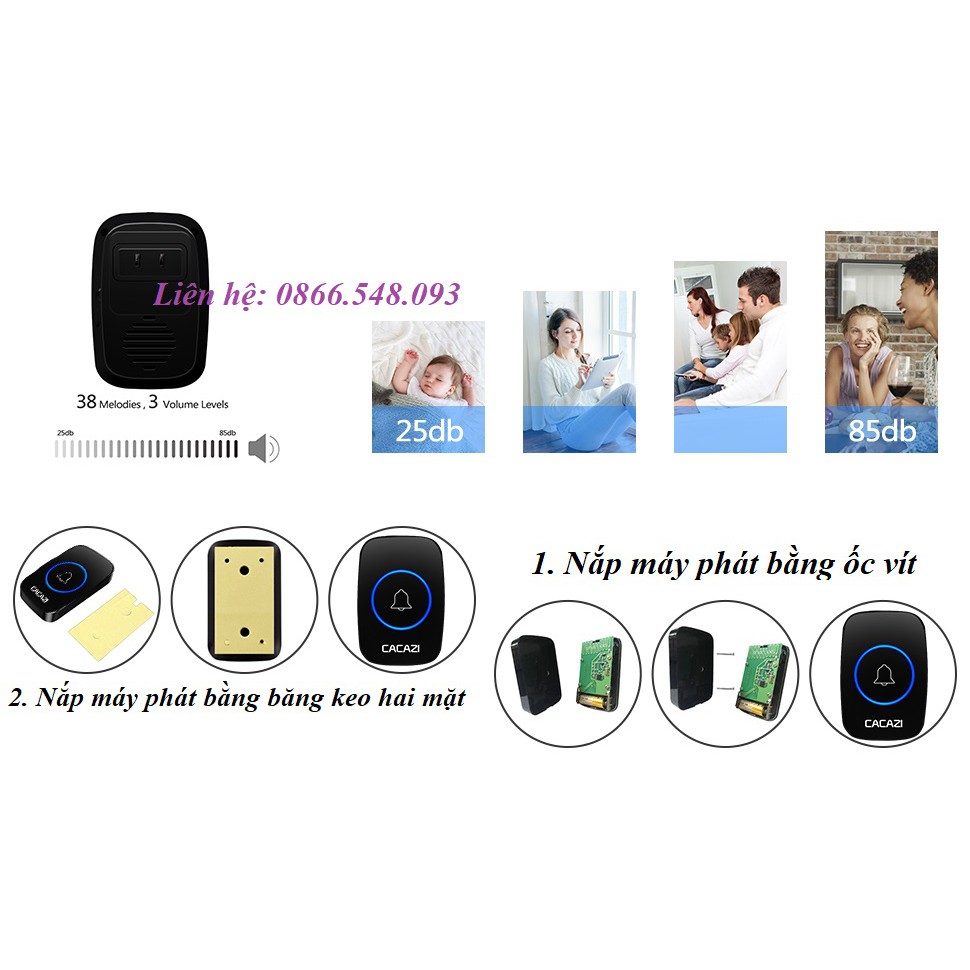 ✍ Thông tin sản phẩm: Chuông cửa không dây CACAZI A10