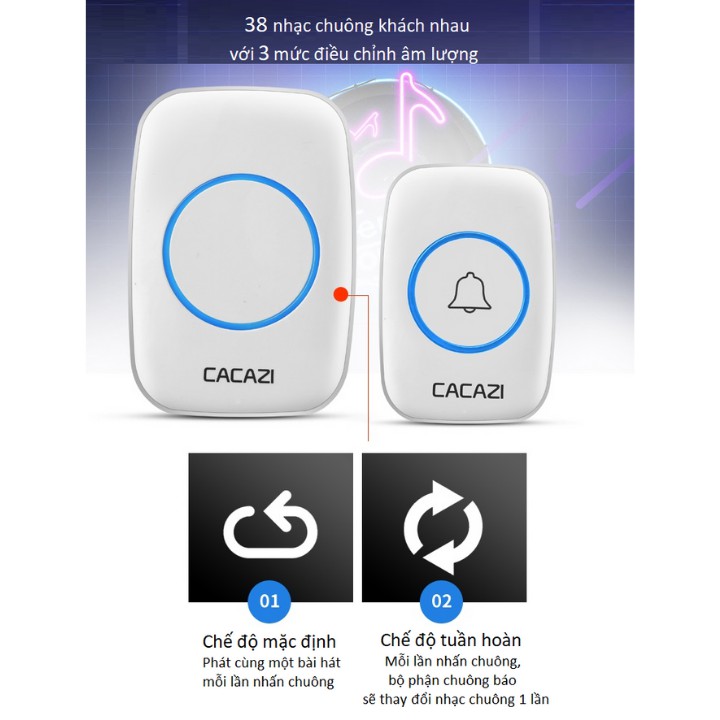 Chuông cửa không dây Cacazi A10 chống nước , Thiết kế nhỏ gọn, sang trọng, chống nhiễu, không thấm nước