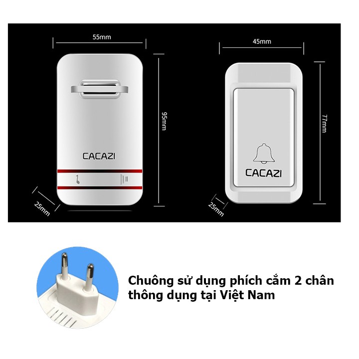 Bộ chuông cửa không dây Cacazi – không dung PIN- Sang trọng - Cực tốt - Bảo hành 1 thángCHUÔNG CỬA KHÔNG DÂY CHỐNG NƯỚC KHÔNG DÙNG PIN