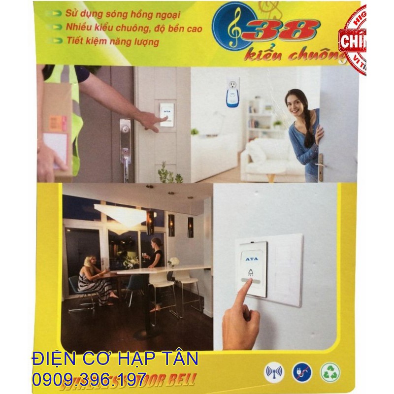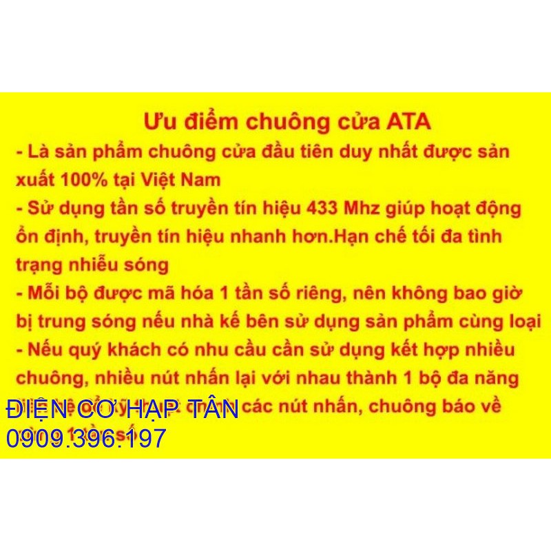 CHUÔNG CỬA KHÔNG DÂY -CAO CẤP - CHỐNG NƯỚC, XUYÊN VẬT CẢN 40-50M- CHÍNH HÃNG ATA