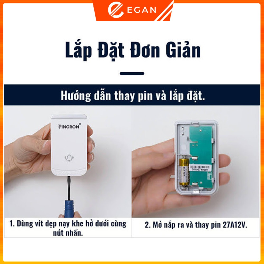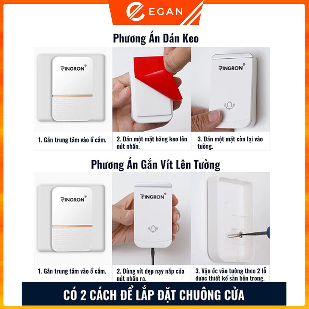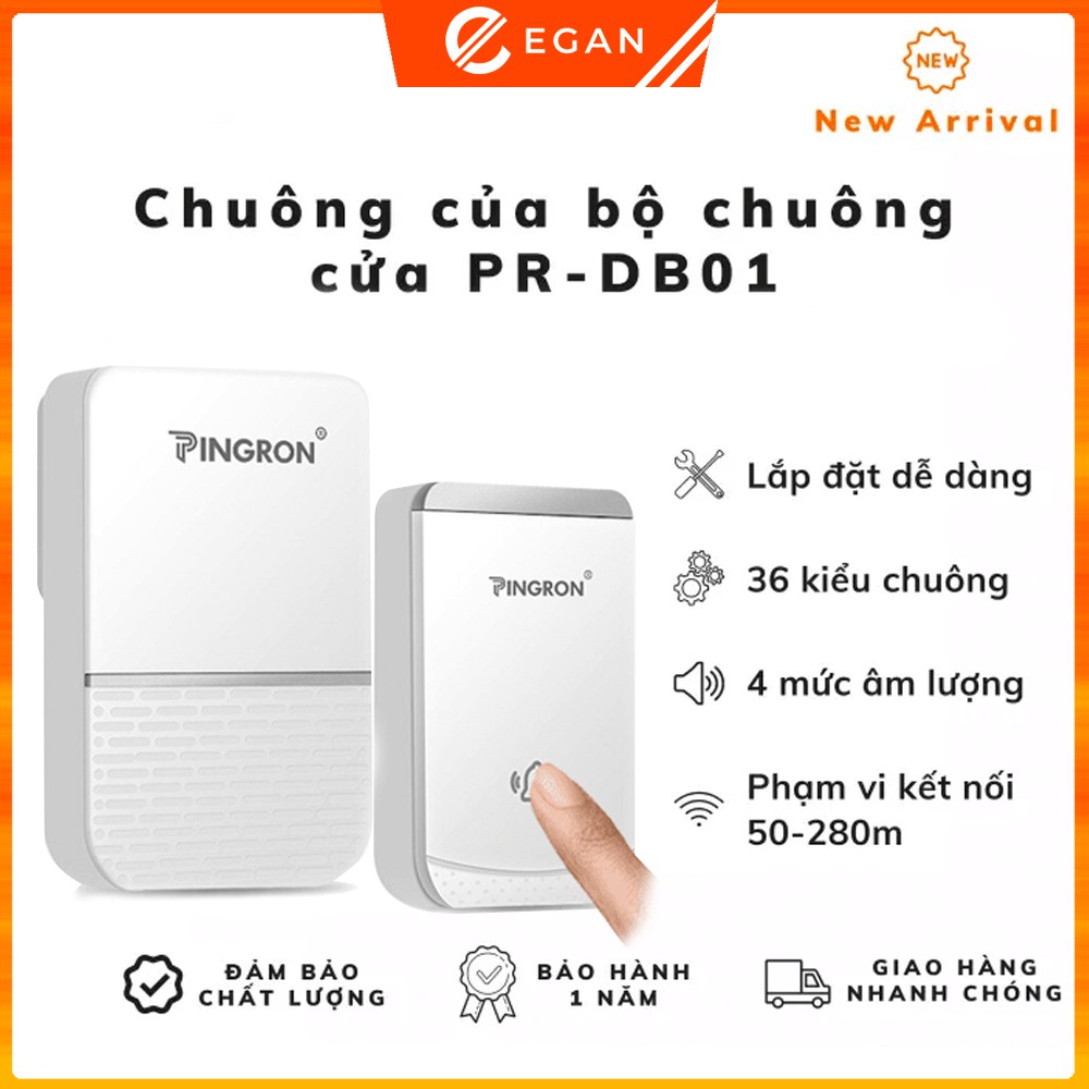 Thiết Bị Điện Gia Dụng > Mạch điện & Phụ tùng > Chuông cửa || Chuông cửa không dây cao cấp Pingron PR-DB01 chống nước tốt, kết nối xa 300m, bảo hành 1 đổi 1, hàng chính hãng.Còn hàng