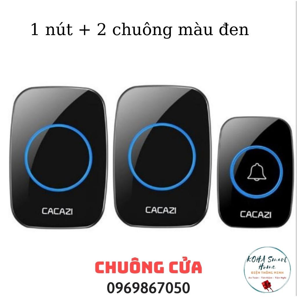 Chuông cửa không dây chính hãng Cacazi loại 1 nút 2 chuông đen sành điệu - 36 kiểu chuông chống nước.