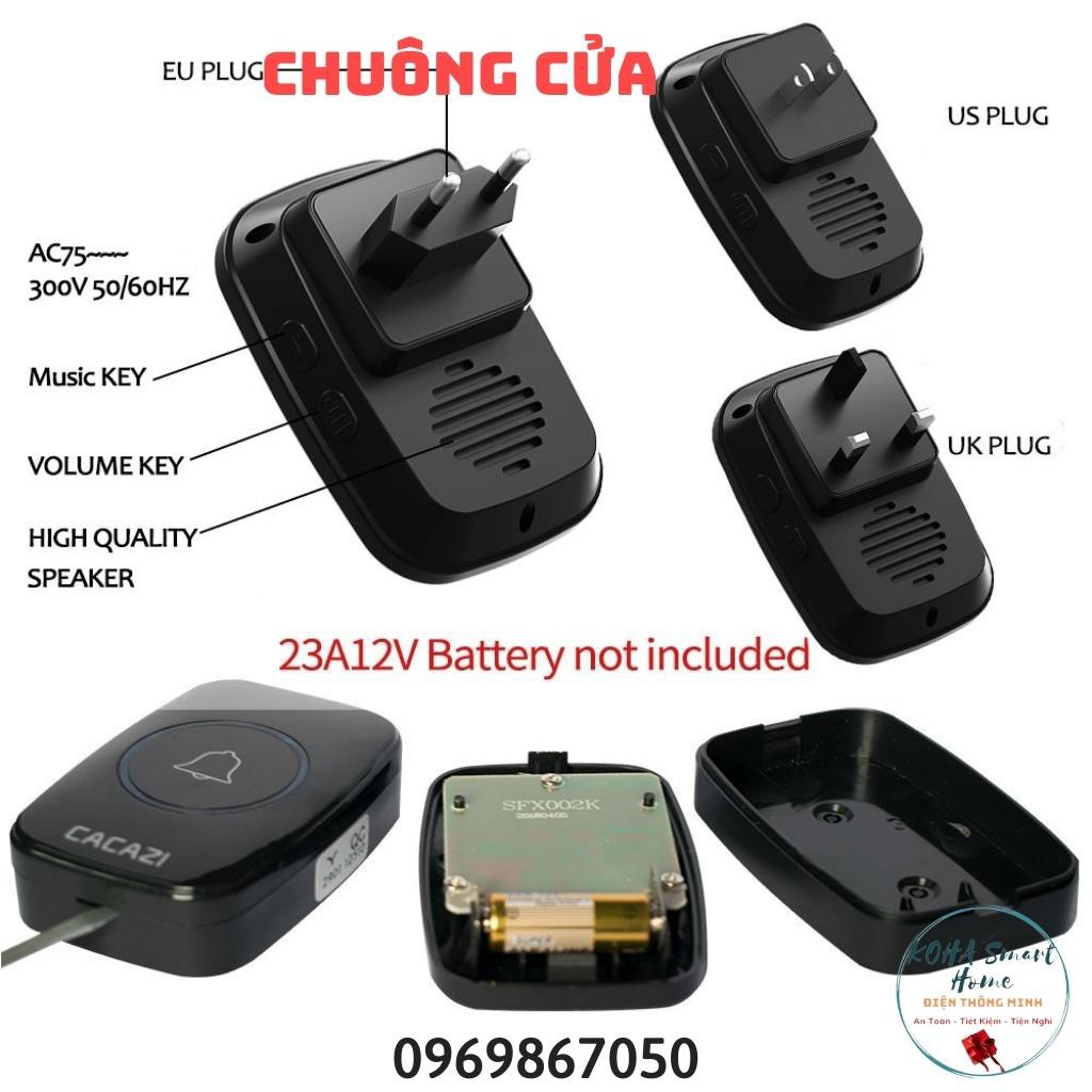 Thiết Bị Điện Gia Dụng > Mạch điện & Phụ tùng > Chuông cửa || Chuông cửa không dây chính hãng Cacazi loại 1 nút 2 chuông đen sành điệu - 36 kiểu chuông chống nước.Còn hàng