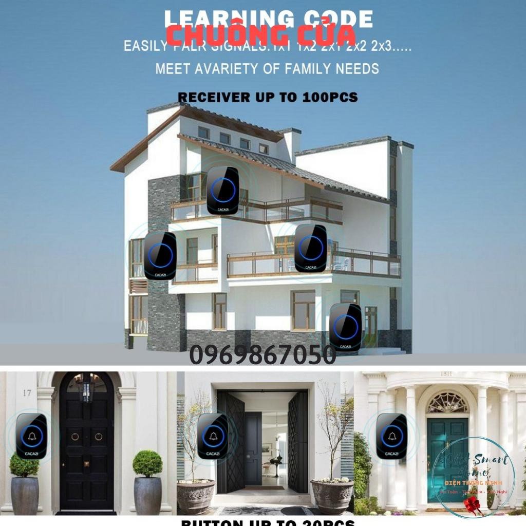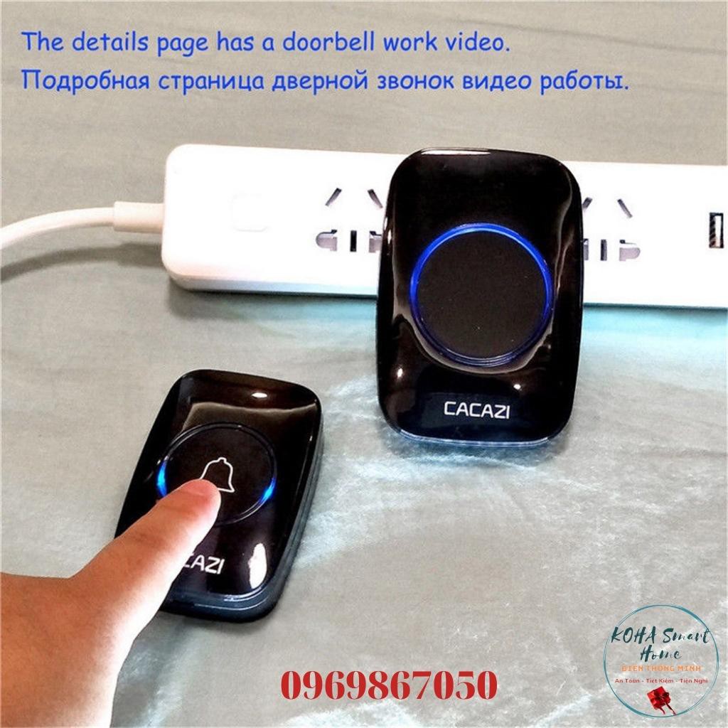 Giới thiệu Chuông cửa không dây chính hãng Cacazi loại 1 nút 2 chuông đen sành điệu - 36 kiểu chuông chống nước.