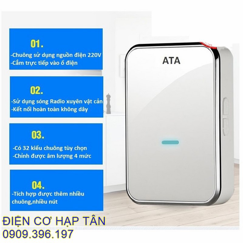 CHUÔNG CỬA KHÔNG DÂY-ĐÔI -CAO CẤP - CHỐNG NƯỚC, XUYÊN VẬT CẢN 40-50M- CHÍNH HÃNG ATA