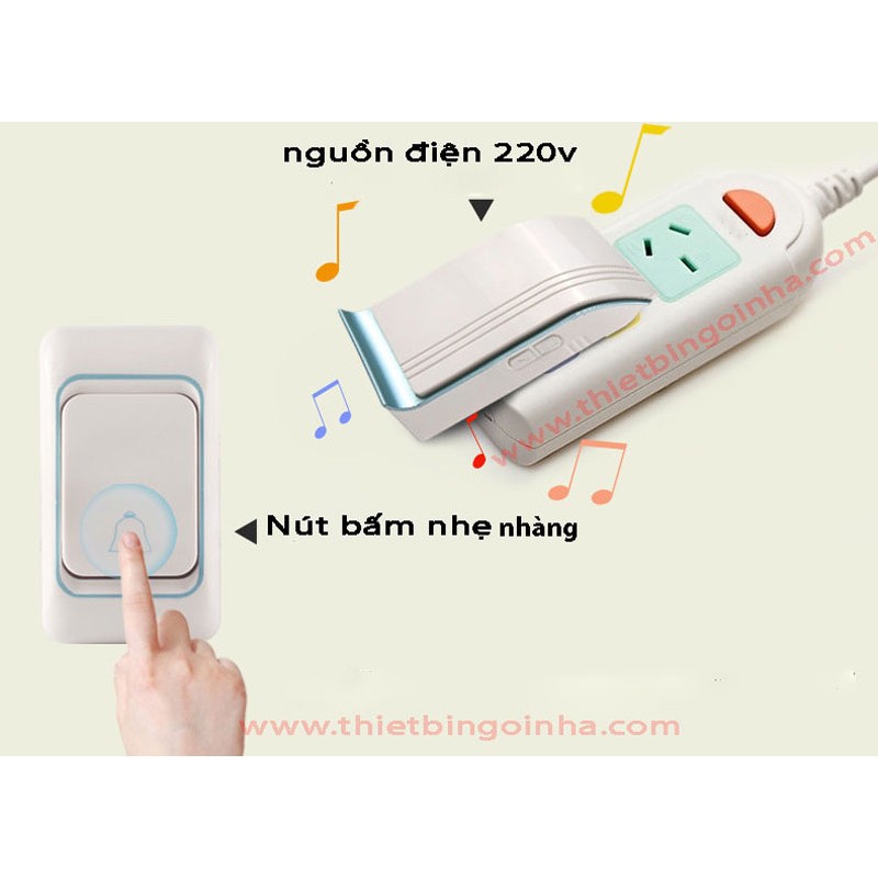 - Nhạc chuông 36 kiểu, 4 mức âm lượng có thể thay đổi bằng nút bấm bên cạnh phải của chuông.