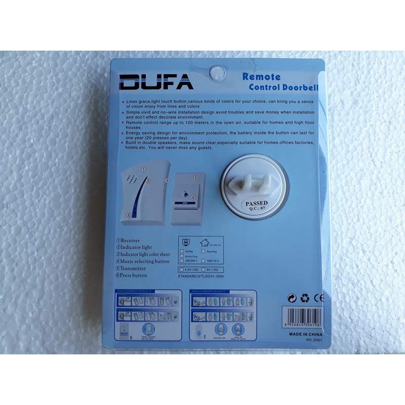 Thiết Bị Điện Gia Dụng > Mạch điện & Phụ tùng > Chuông cửa || chuông cửa không dây DUFACòn hàng