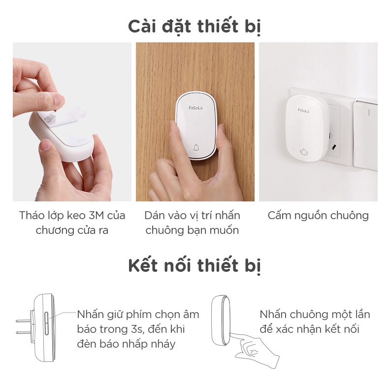 Thương chào các bạn đến với thương hiệu “FASOLA - Hàng gia dụng phong cách Nhật Bản”Tên sản phẩm: Chuông cửa không dây FaSoLa