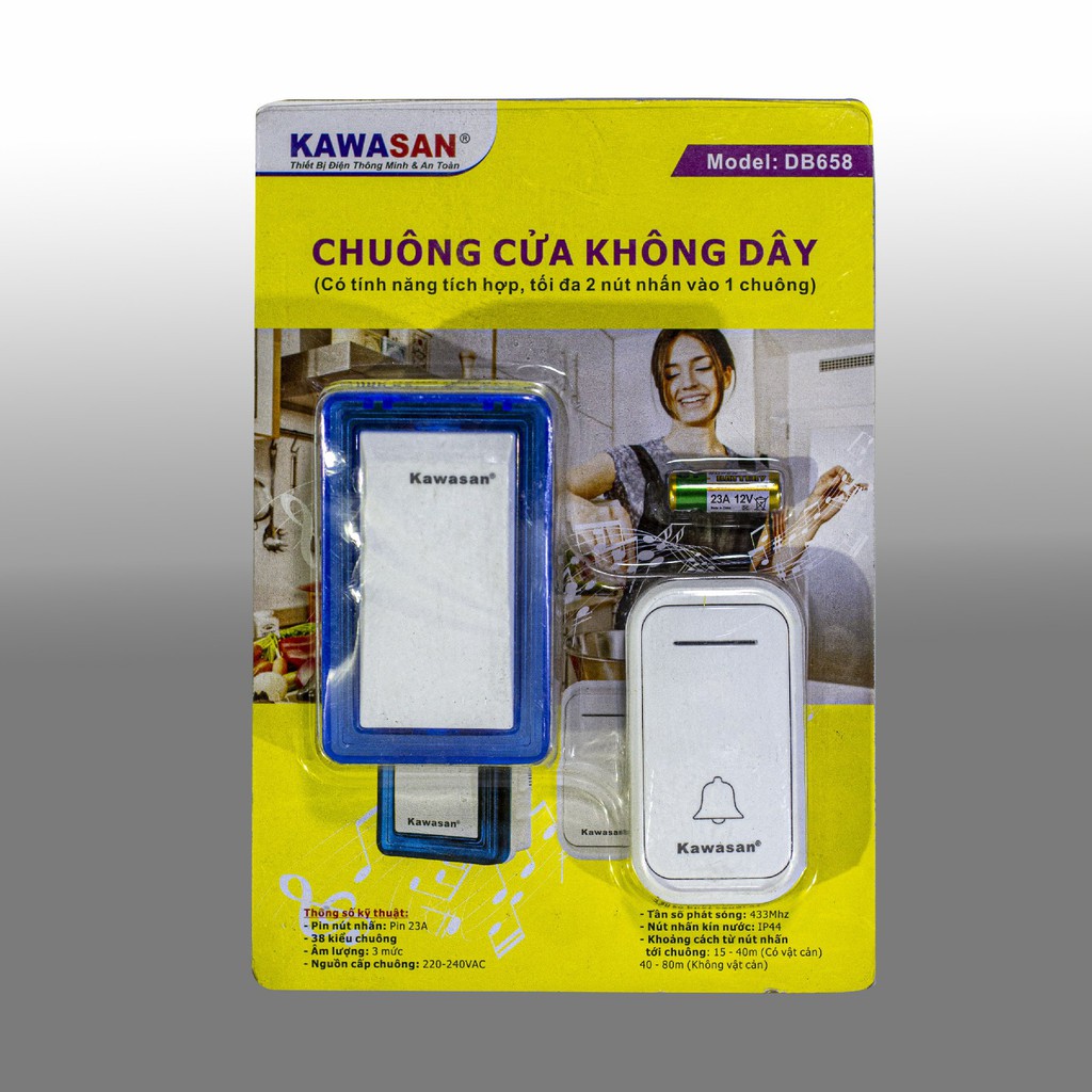 Giới thiệu Chuông Cửa Không Dây KAWASAN 38 Kiểu Chuông - DB658 - Điện gia dụng Hoàng Kim