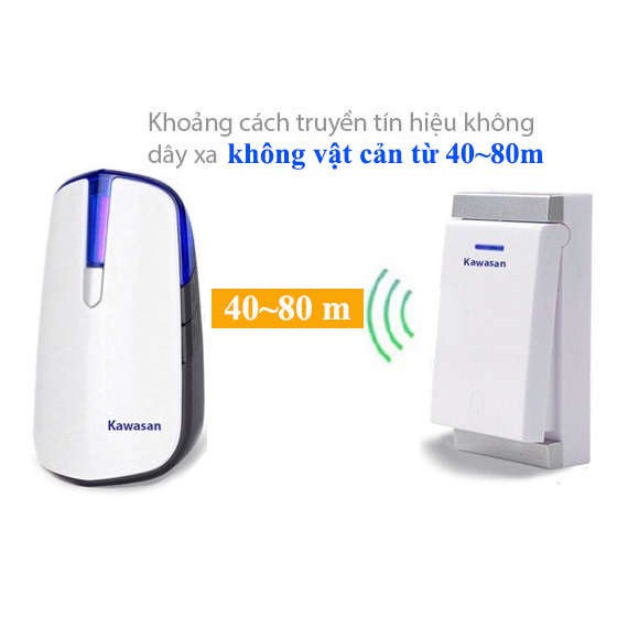 Chuông Cửa Không Dây Kawasan DB818 - Nút Nhấn Không Cần Pin - Ngoài Trời Chống Nước - Chính Hãng