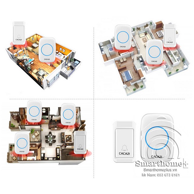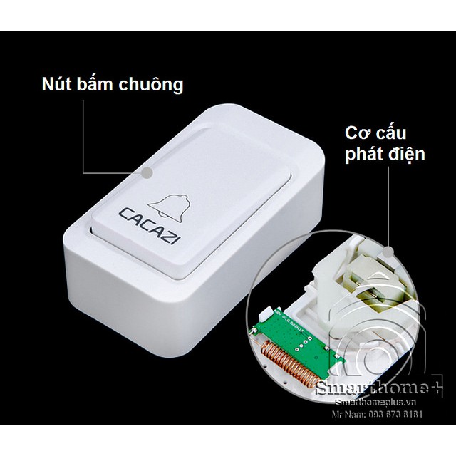 Chuông Cửa Không Dây Không Pin 1 Nút Bấm 2 Loa Chuông Cacazi SHP-CA2