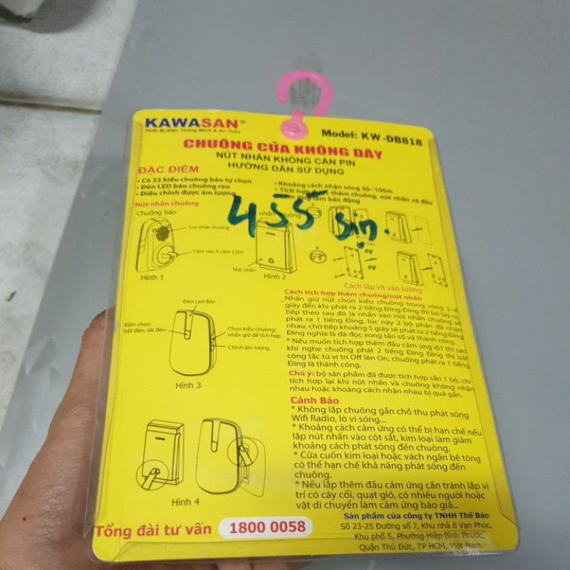 Thiết Bị Điện Gia Dụng > Thiết bị điều khiển từ xa || Chuông Cửa Không Dây KW - DB818Còn hàng