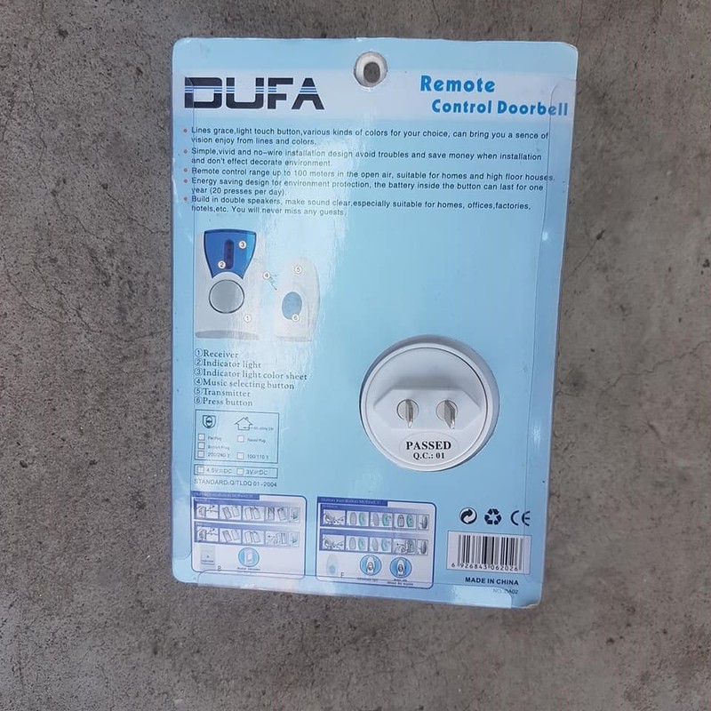 Chuông cửa không dây báo khách Decom được sản xuất tại Việt Nam, là loại chuông cửa không dây với nút nhấn được thiết kế chống nước, có 16 kiểu chuông để lựa chọn.