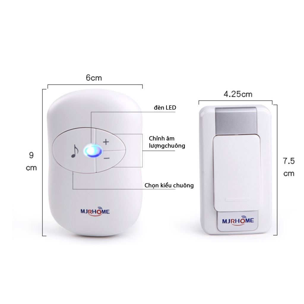 Thiết Bị Điện Gia Dụng > Mạch điện & Phụ tùng > Chuông cửa || Chuông cửa không dây MJRHOME H-A16ECòn hàng