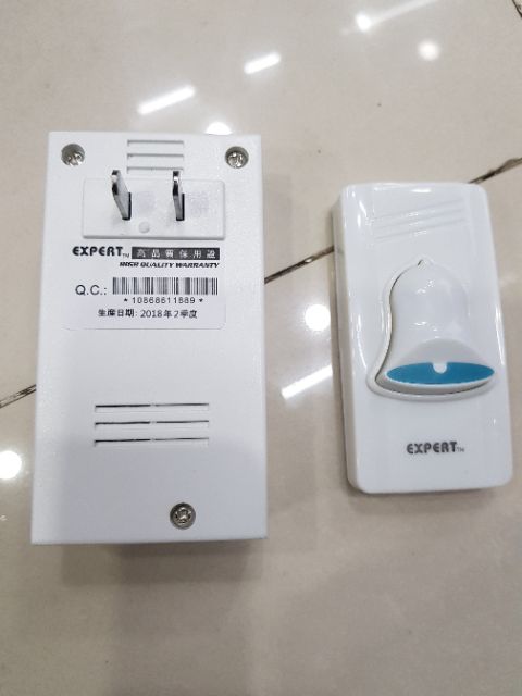 Chuông cửa không dây, hiệu Expert, kiểu dáng gọn đẹp, màu trắng. Có 2 kiểu chuông để chọn lựa, khoảng cách điều khiển chuông là 150m! sử dụng pin 5w, siêu tiết kiệm!Giá MOON